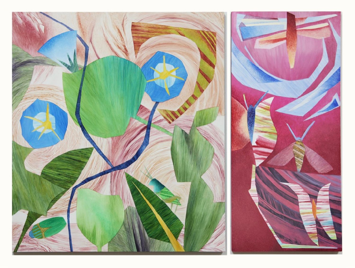 These scenes combined painted animal cut-outs set in a stenciled environment of plants and flowers.