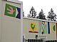 Kelley Wilson, architect for this rural pre-school contacted us after seeing our "painted architecture" for Tabor Commons. This facility, a functional arrangement of manufactured units painted in large blocks of bright colors, set the stage for our extended mural.
